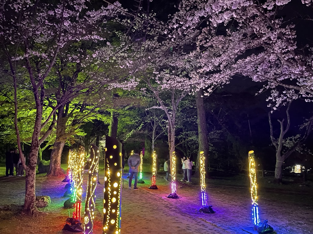 Yozakura, or enjoying cherry blossoms in the evening, is part of hanami, a tradition of appreciating flowers during their peak blooming season. The hanami custom in Japan is believed to have begun as early as the eighth century and eventually expanded to include evening flower viewing. Today, popular cherry blossom spots around the country hold night illuminations during the full bloom season to continue the long tradition of hanami and add variety to the flower-viewing experience.