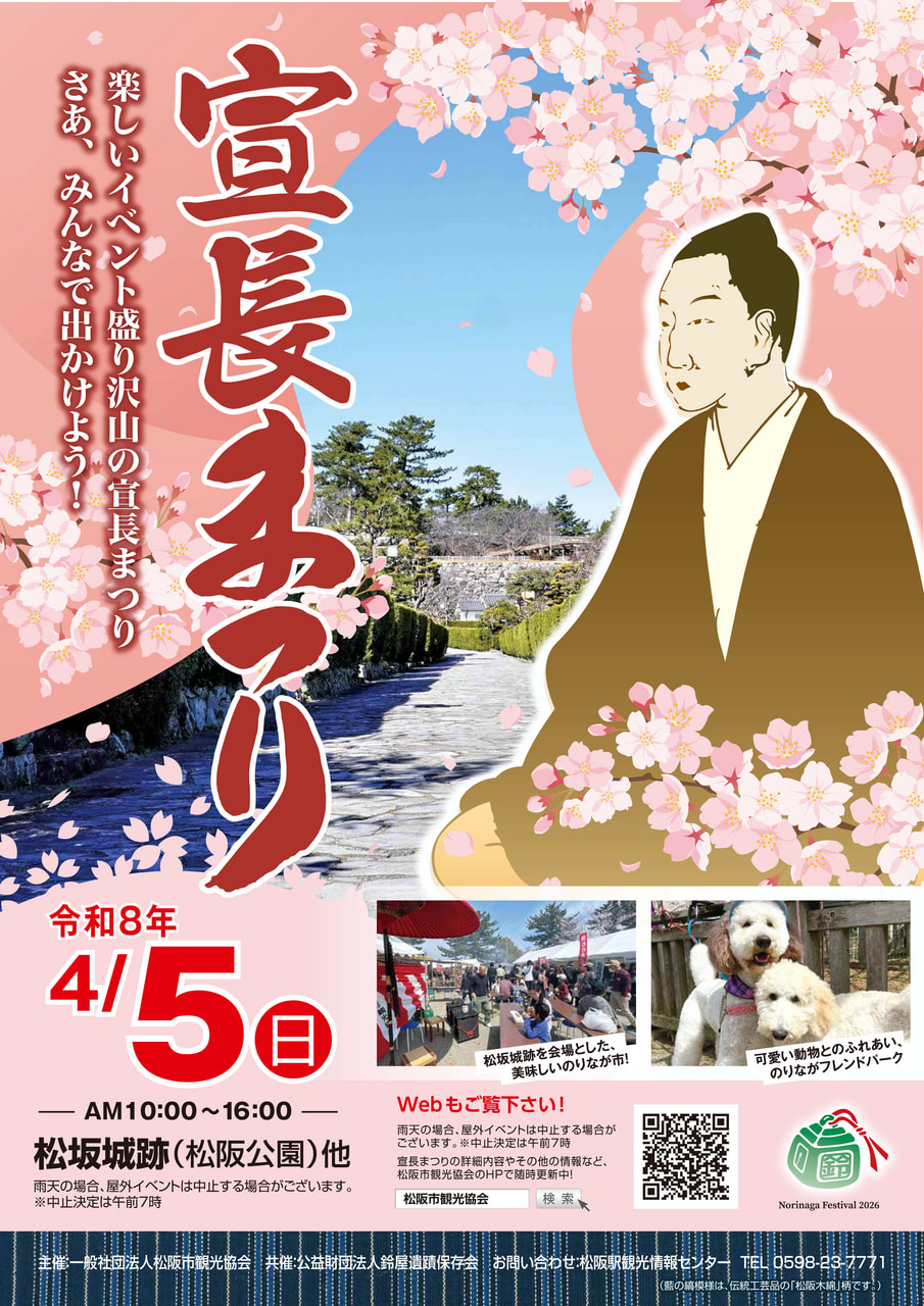 松坂城跡(松坂公園)をメイン会場として、松阪が生んだ国学者「本居宣長」にちなんだ趣向をこらした催しを開催します。